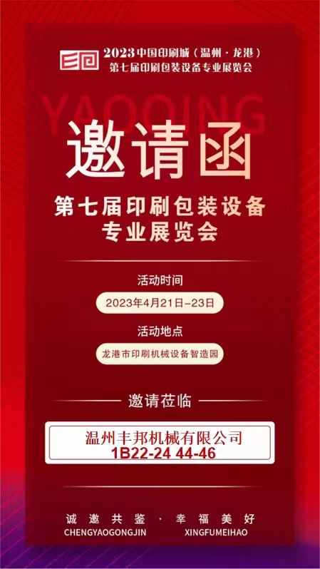 溫州豐邦機(jī)械有限公司參加2023中國印刷城溫州龍港第七屆印刷包裝設(shè)備專業(yè)展覽會(huì)